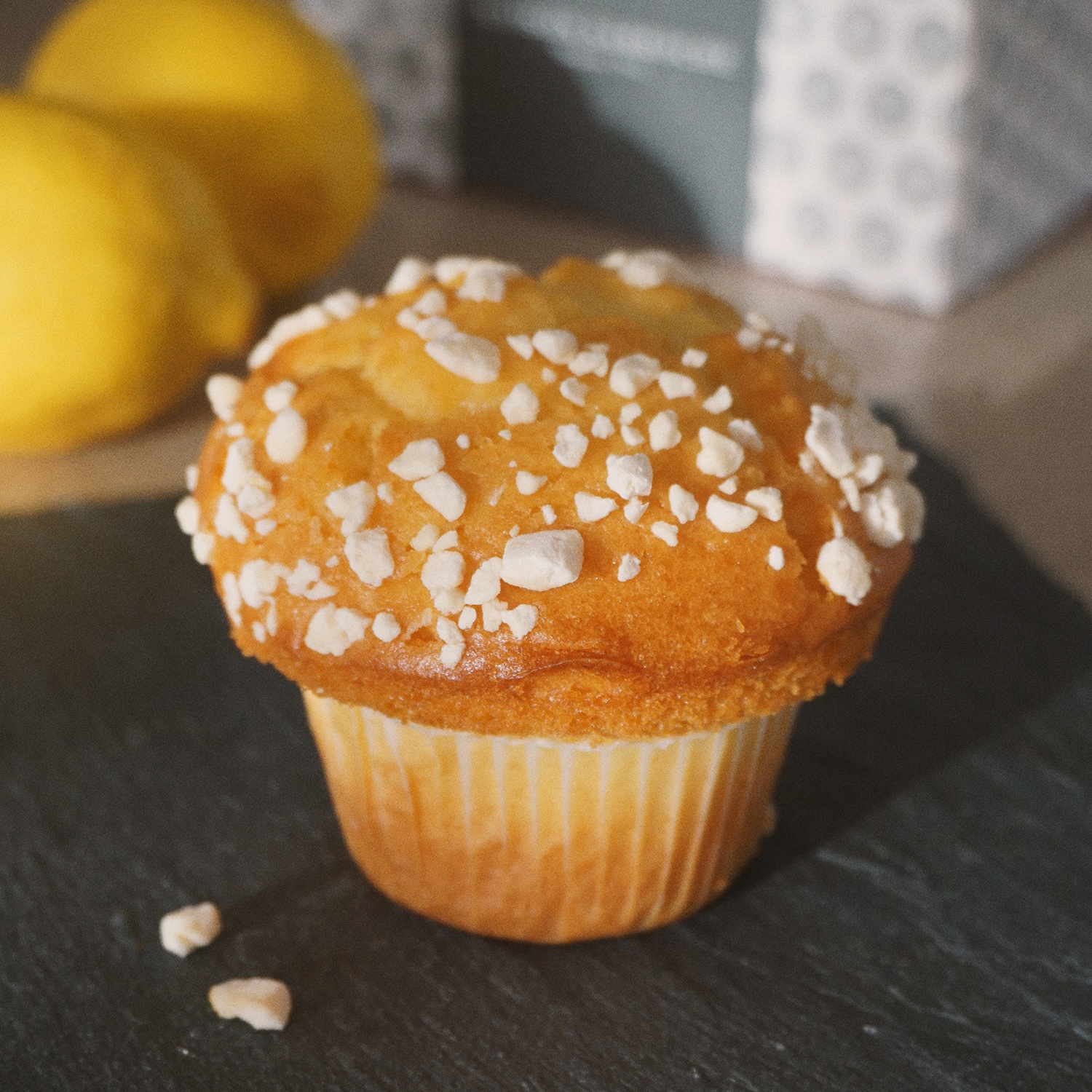 Notre muffin citron aux éclats de meringue cache un irrésistible cœur coulant. Entre l’acidité délicate du citron et la douceur croustillante de la meringue, chaque bouchée est un pur moment de gourmandise.