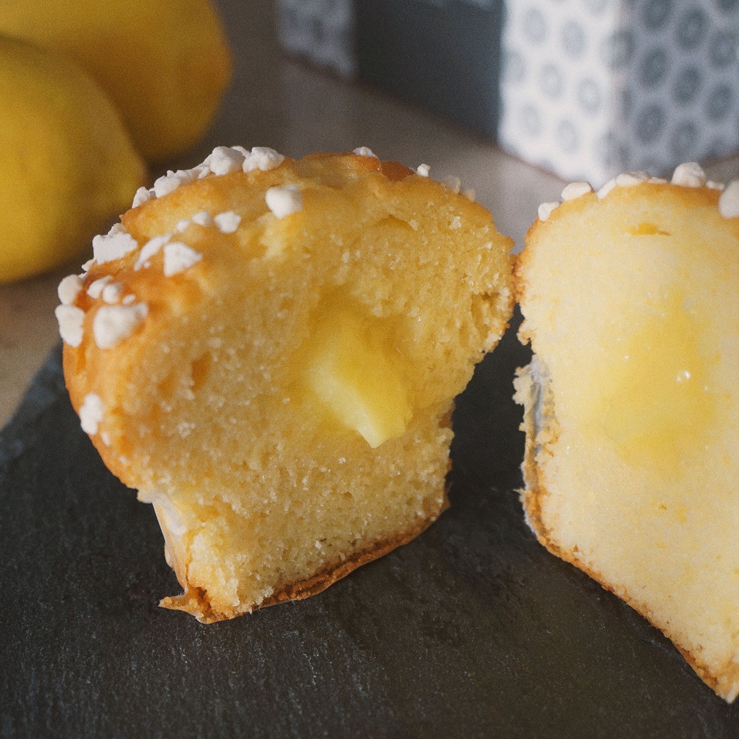 Notre muffin citron aux éclats de meringue cache un irrésistible cœur coulant.